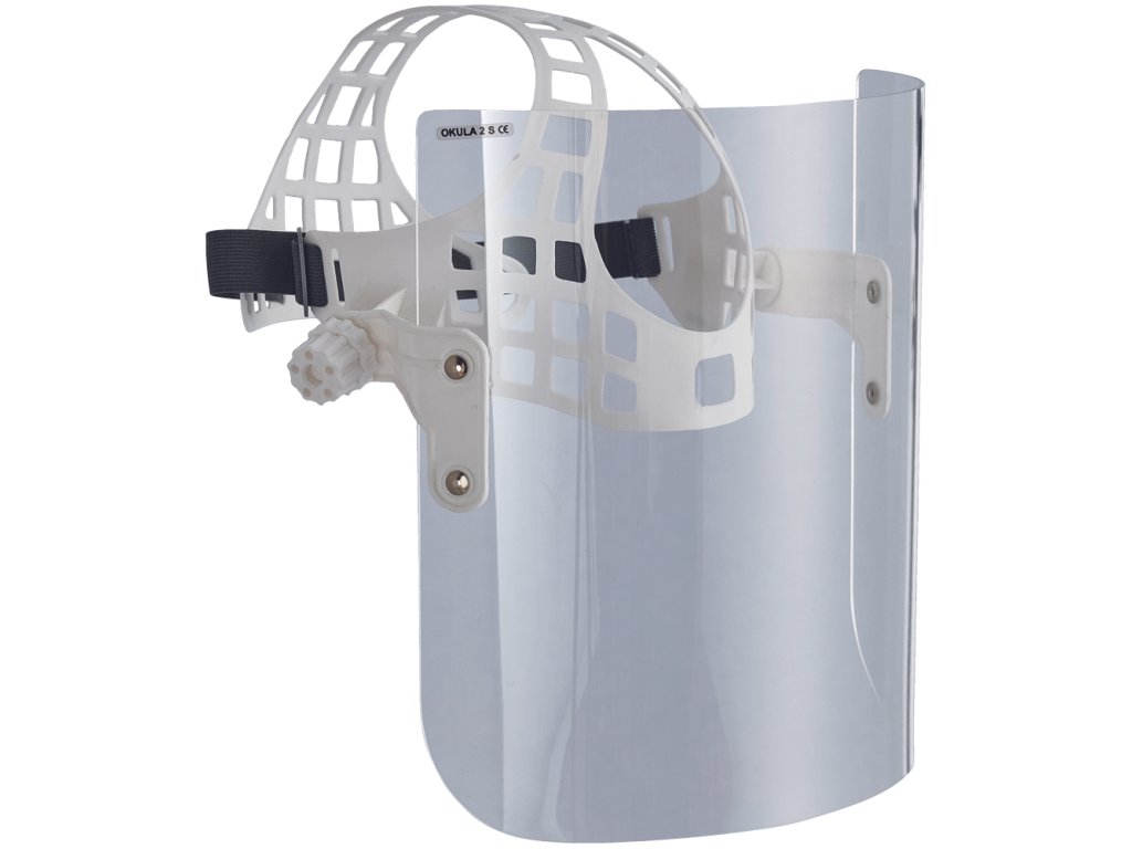Štít s náhlavním křížem, umožňuje současné použití dioptrických brýlí, rozměr: 220 x 290 mm. Vhodná ochrana očí, obličeje a dýchacích orgánů před mechanickými částicemi.