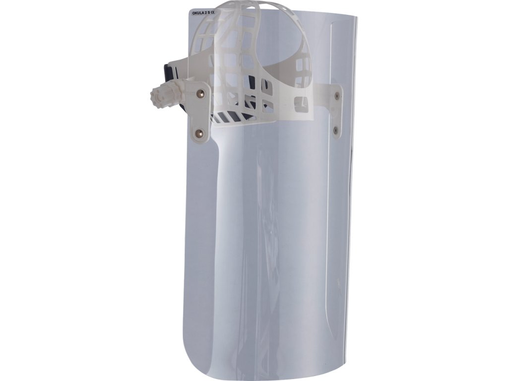 Štít s náhlavním křížem, umožňuje současné použití dioptrických brýlí, rozměr: 330 x 290 mm. Vhodná ochrana očí, obličeje a dýchacích orgánů před mechanickými částicemi.